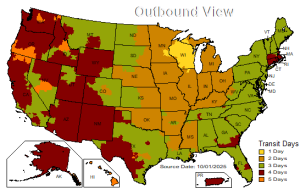 We ship from Wisconsin 53948. Speedee is 1-2 business days for their territory. UPS is 2 days to the midwest, 3-4 days to the Coasts. 5 days to the Rural Coastal/ Mountain regions. See the time in transit maps below. We can ship Expiedited (next day, 2 day, 3 day select).